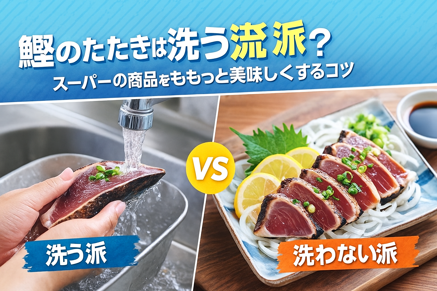 スーパーの鰹のたたき、洗うか洗わないかで迷っている方は多いですが、結論としては「どちらでもOK」。商品や家庭の好みによって使い分けるのがベストです。